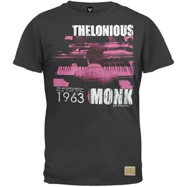 Thelonious Monk hits the keys during his famous 1963 CBS Recording Sessions in a stylized violet photo graphic on the front of this premium black, 100% cotton t-shirt. Presented by and featuring a photograph by legendary rock photographer Jim Marshall, with distressed overdye print and soft, reinforced construction for authentic vintage style and quality, this is a a truly stunning tee - any Monk fan's Dream.